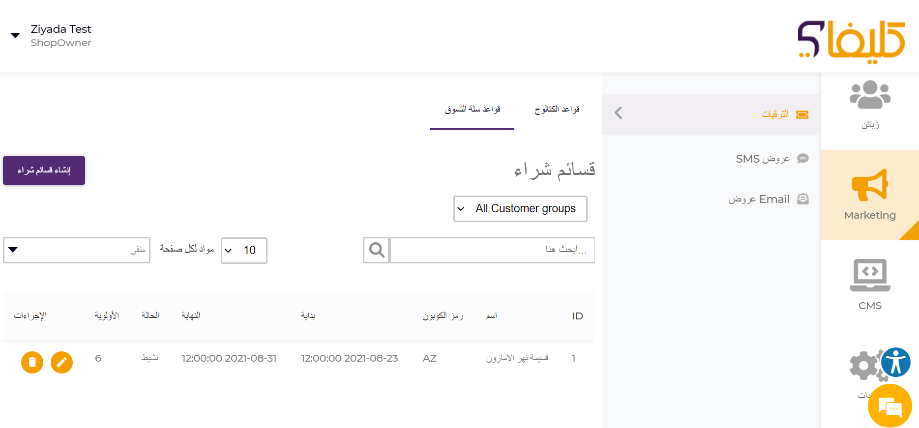 شراء (كوبونات) لعملائك ،كما يمكنك تخصيصها لمجموعات معينة من عملائك ،وتحديد فترة