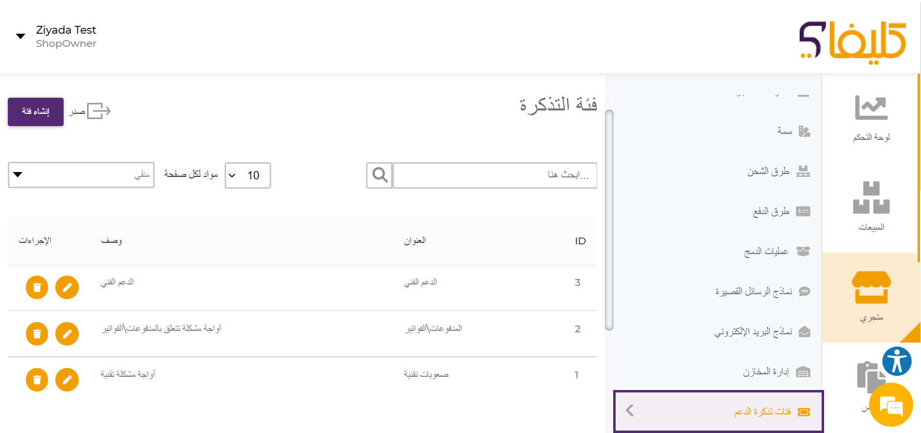 خلال هذا القسم يمكن إدارة ودعم زبائنك عندما يريدون التواصل معك من خلال حسابهم الخاص ،ورفع تذكرة دعم لك. وكذلك يمكنك المتابعة مع الزبون وحل أي مشكلة تواجة