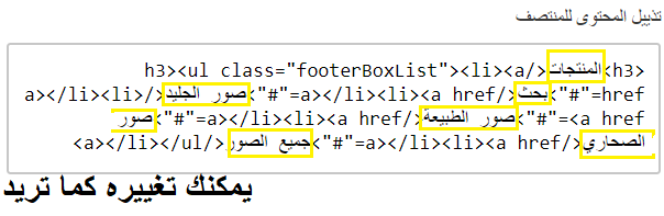 هنا يمكنك تحرير الجزء الأوسط لذيل الصفحة عن طريق